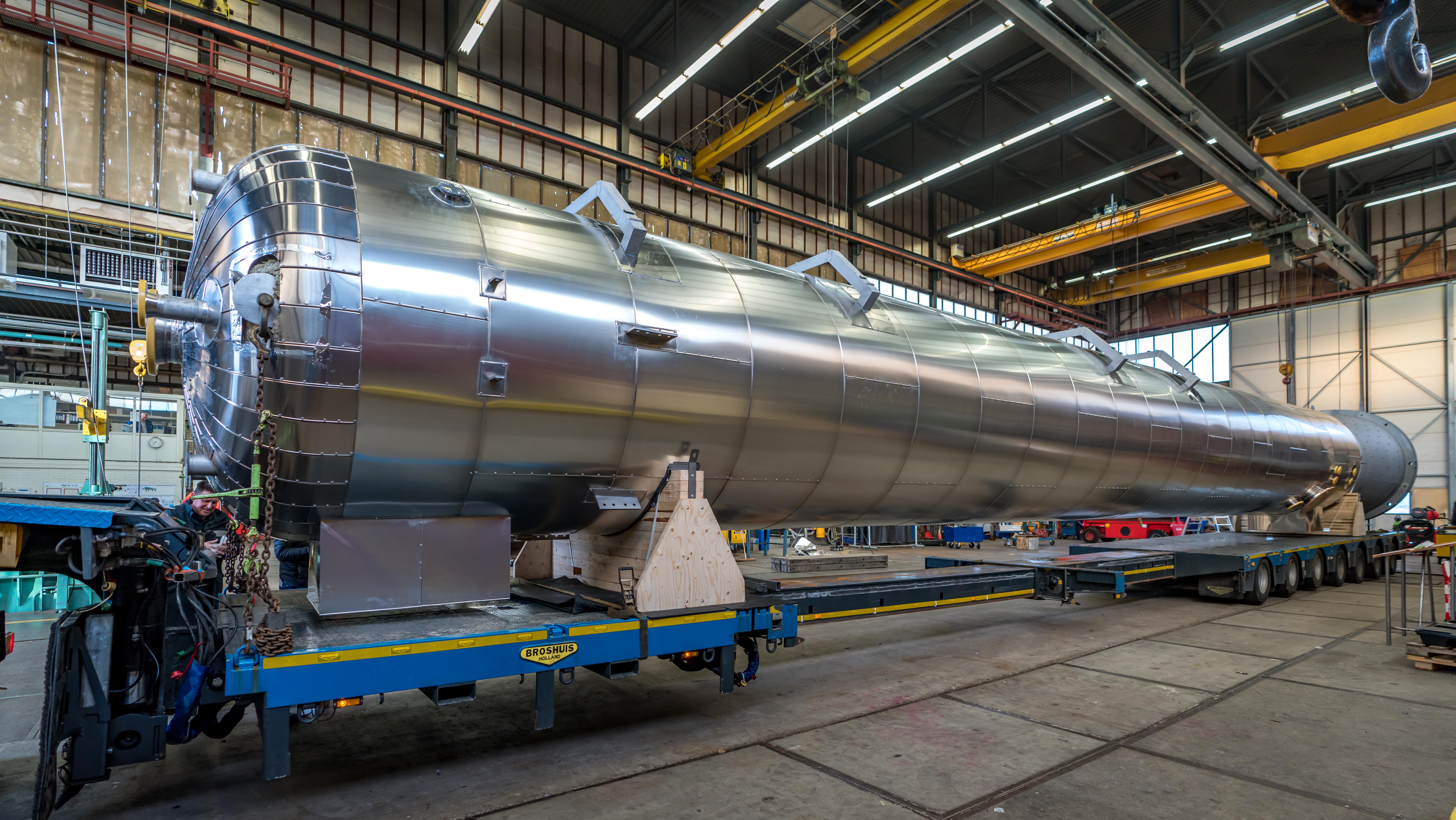With a length of 25 meters and a diameter of 2.2 meters the Column was loaded onto a truck for transportation to the client in the Rotterdam Botlek area.